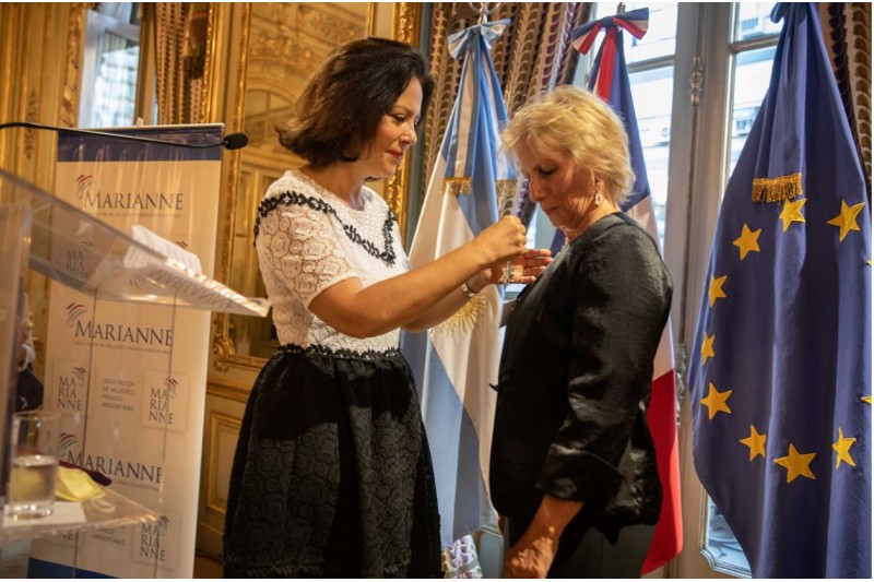 La ceremonia comenzó con la palabra de la Embajadora Claudia Scherer-Effosse quien recorrió la trayectoria de Patricia Pellegrini, las actividades y los momentos que vivieron juntas cuando Patricia estaba a cargo de la Presidencia de Marianne, mencionó su chispa e incansable energía. Luego le hizo entrega de la Légion d'honneur; la Orden Nacional de la Legión de Honor es la más alta distinción que concede el Estado francés a personas notables.