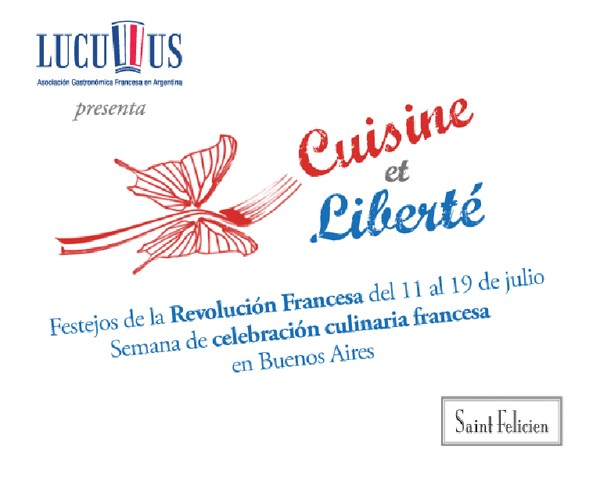 Festejos culinarios de la Revolución francesa LUCULLUS - Asociación Gastronómica Francesa en Argentina presenta CUISINE & LIBERTE, festejos culinarios de la Revolución francesa del 11 al 19 de julio que empieza con LE MARCHÉ, feria de cocina francesa. Del 11 al 19 de julio, podrá disfrutar de la mejor gastronomía francesa en restaurantes, panaderías, pastelerías, pulpería, creperí...